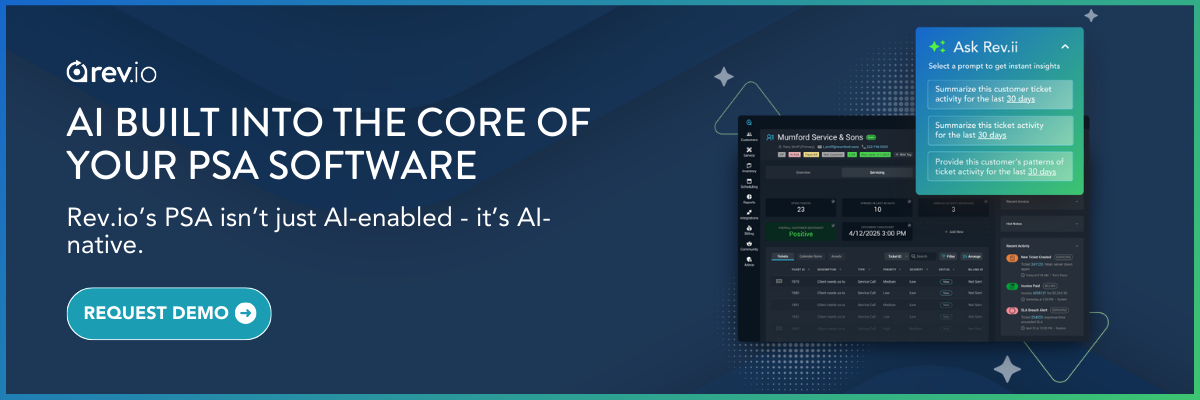 Request a demo of Rev.io to see how voice-powered AI and integrated PSA help your team capture more billable time and scale without adding headcount.