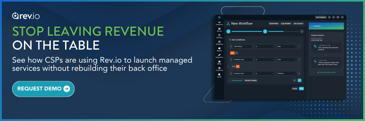 See how Rev.io helps CSPs launch and scale managed services with a single billing and revenue platform. Request a demo.
