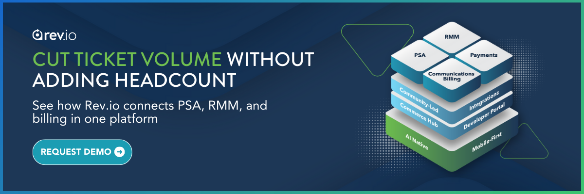 Rev.io eliminates that problem by bringing PSA, RMM, and billing into one platform. Alert creates ticket, ticket tracks time, time flows to invoice. No handoffs, no integration maintenance, no wondering why data doesn't match.