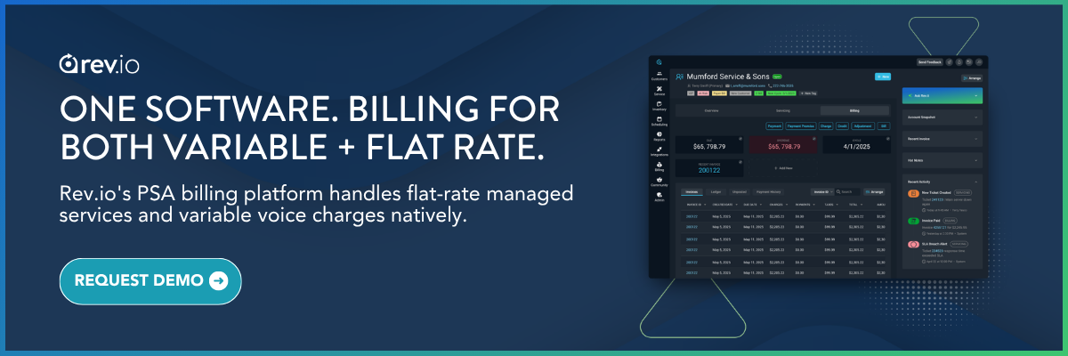 Your client's invoice shouldn't be two separate documents, one for managed IT and one for voice. But consolidating flat-rate managed services with variable usage charges requires a billing layer built to do both at the same time. Most PSAs can't, which leaves you with two bad options: